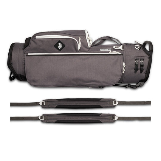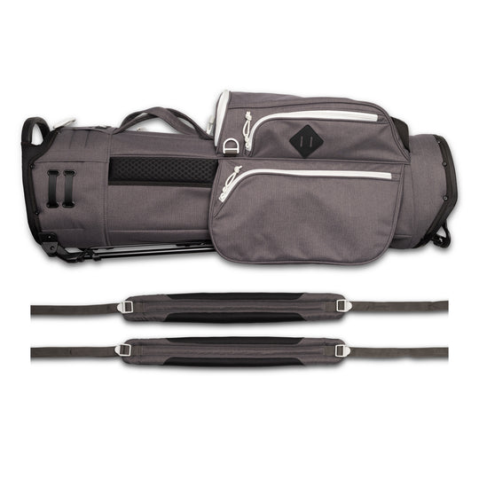 Designed with a versatile single or double shoulder strap configuration the Trouper 3.0 is your ideal companion on the course. A large insulated front cooler pocket has enough space to keep four 16oz cans cold. The two newly improved fleece-lined valuable compartments and seven-pocket design secures valuables while allowing for straightforward access. A large five-way divider allows for simple organization and an easy pull for all 14 clubs even with oversized grips. Simply put the Trouper 3.0 delivers an effortless and reliable experience for any player round after round. Featuring All-New Straps and a bolstered stand mechanism.